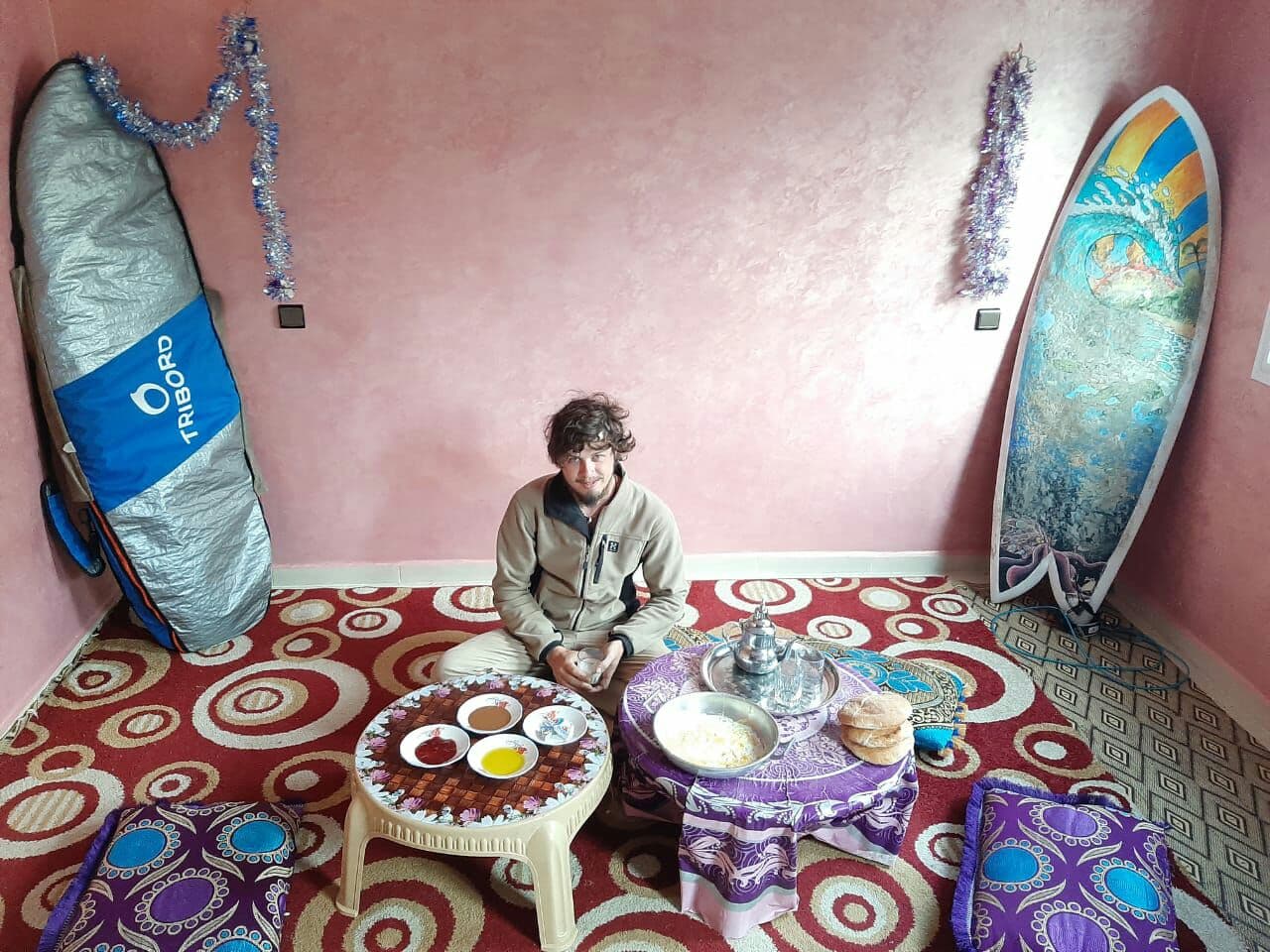 First surf lesson in Taghazout: For 2 hours I tried to catch a wave, but did not have any success.A few days later I surfed my first white waves in Taghazout or Aourir |